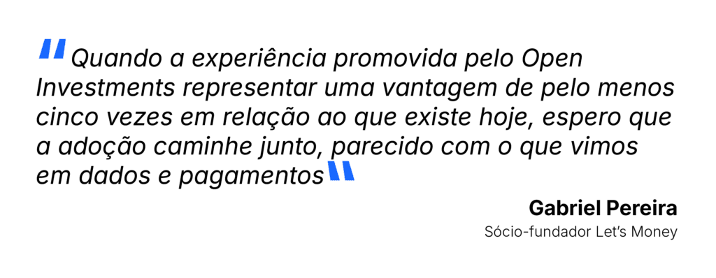 Também nesse ponto ganha peso a percepção de especialistas sobre o ritmo de adoção. Para Gabriel Pereira, sócio-fundador da Let’s Money, a virada depende de um salto expressivo na entrega de valor ao usuário.