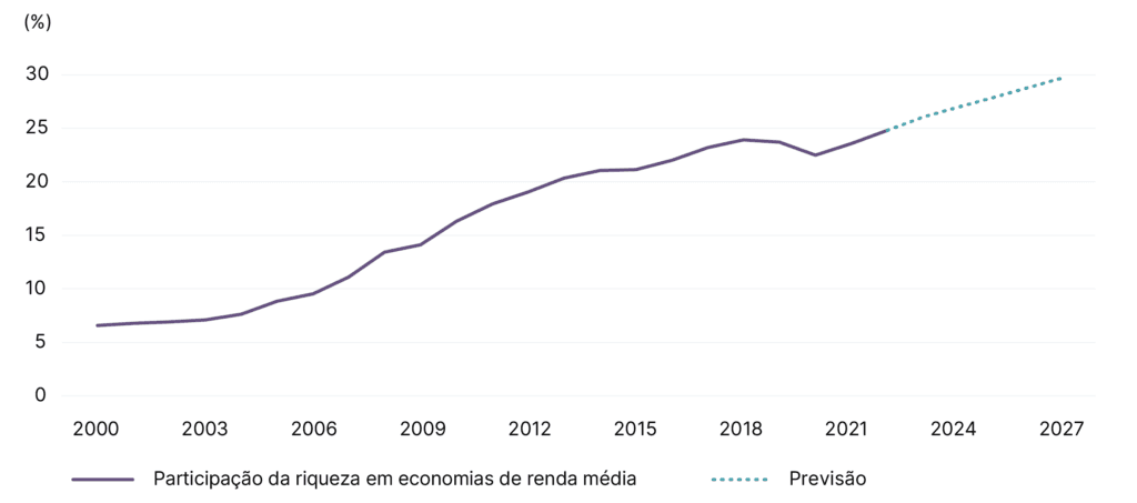Ao mesmo tempo, um relatório publicado pelo Credit Suisse e UBS aponta que economias emergentes representarão quase um terço da economia global também até 2027. O resultado, que é acima do um quarto atual, revela um mercado grande demais para ser ignorado no Brasil.