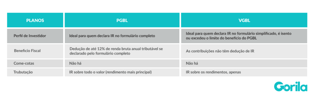 - Abatimento do IR: É possível deduzir até 12% do IR no caso de previdência PGBL se declarada pelo formulário completo.